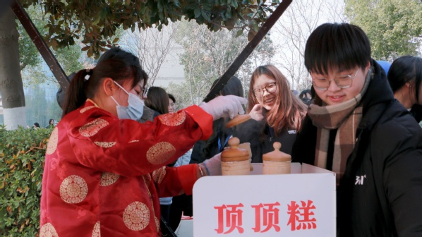 图为学生品尝顶顶糕 摄影:熊昱淞