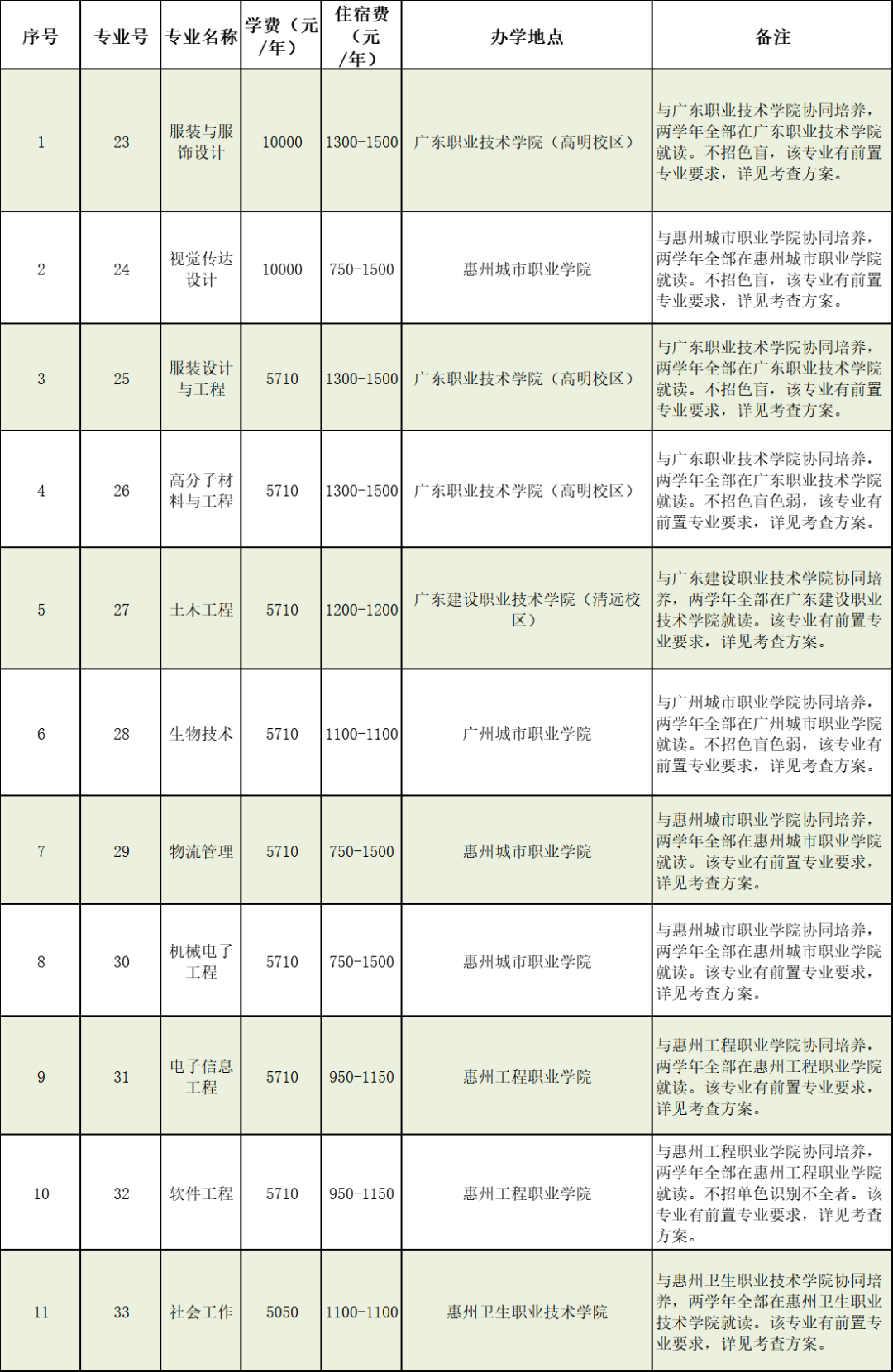惠州学院2026年退役大学生士兵普通专升本拟招生专业