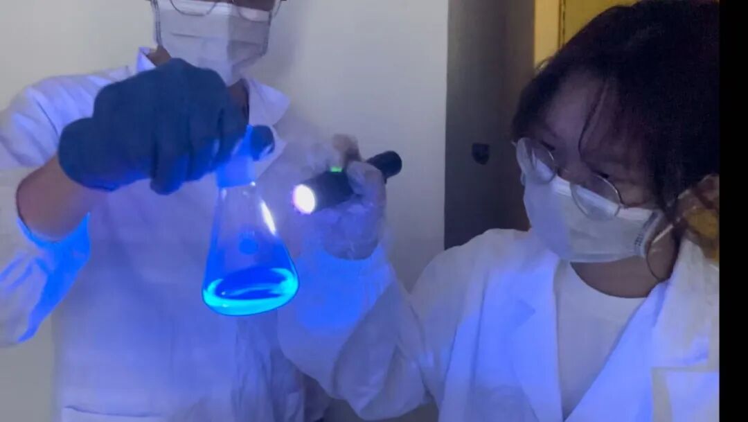 “一般来说这三项技术原本是独立运用在商业化蓝光材料里的,我们把它们都融合在一个材料里,让它的功能更加强大了。”2023级高分子材料与工程专业的李钰兰说,以前的蓝光材料得依赖外源敏化剂实现发光效率的提升,比如传统LED材料。“逐梦蓝图”团队的目标是设计出兼具高色纯度、高效率、低成本的新型蓝光材料,追求真实细腻的画面,这样色纯度就能大大提升,画面看起来更真实。他们在已有的热活化延迟荧光分子基础上,尝试嵌入敏化基团,以替代传统的外源敏化剂。