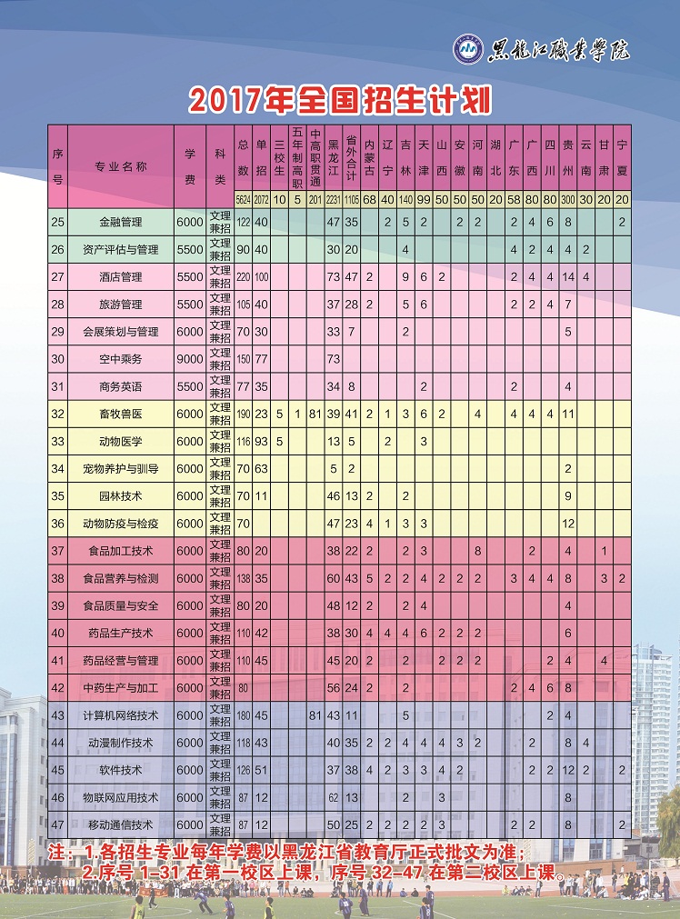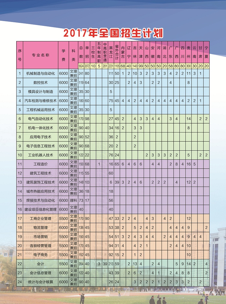 黑龙江职业学院2017年普通高职招生计划