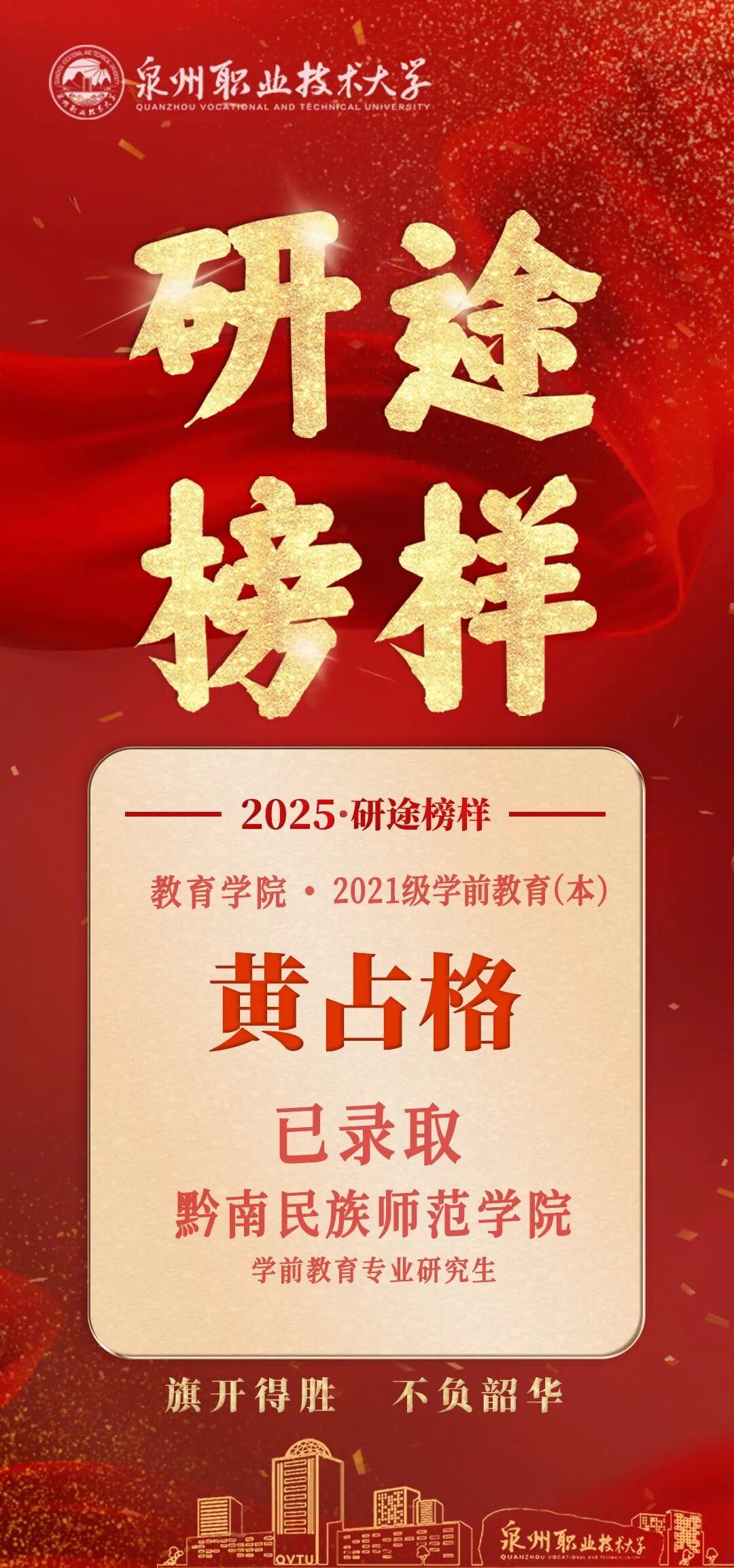 2025年6月 ,被泉州职业技术大学评为优秀师范毕业生和优秀毕业生;