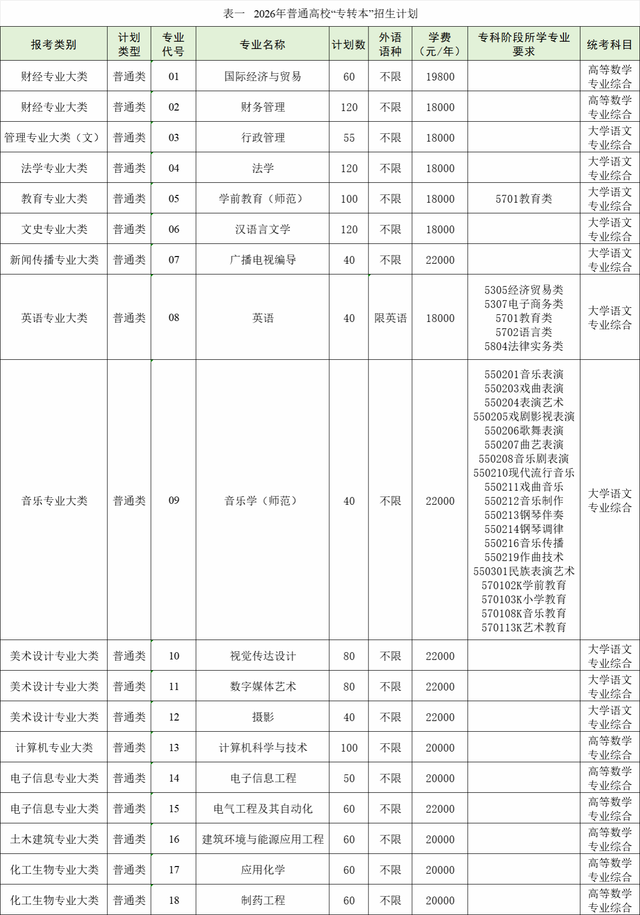 2026年我校“专转本”计划招收普通类在校生1285人,招生专业及计划数见表一。