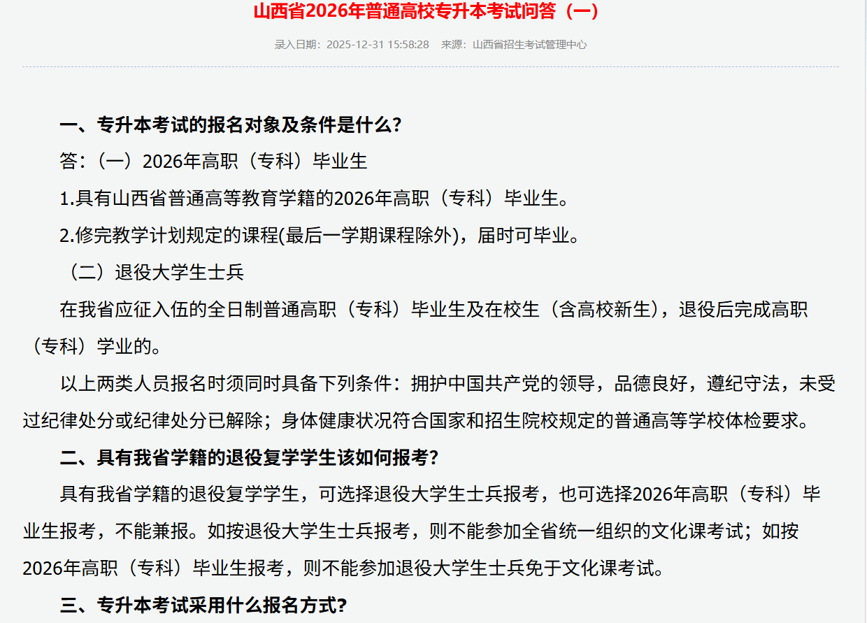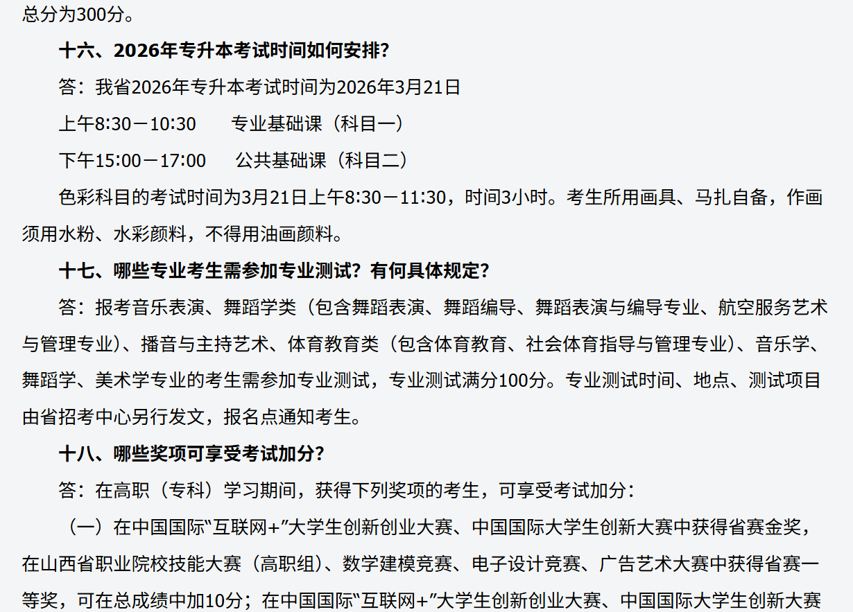 山西省2026年普通高校专升本考试问答(一)
