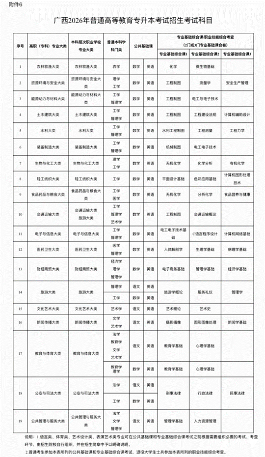 6.广西2026年普通高等教育专升本考试招生考试科目