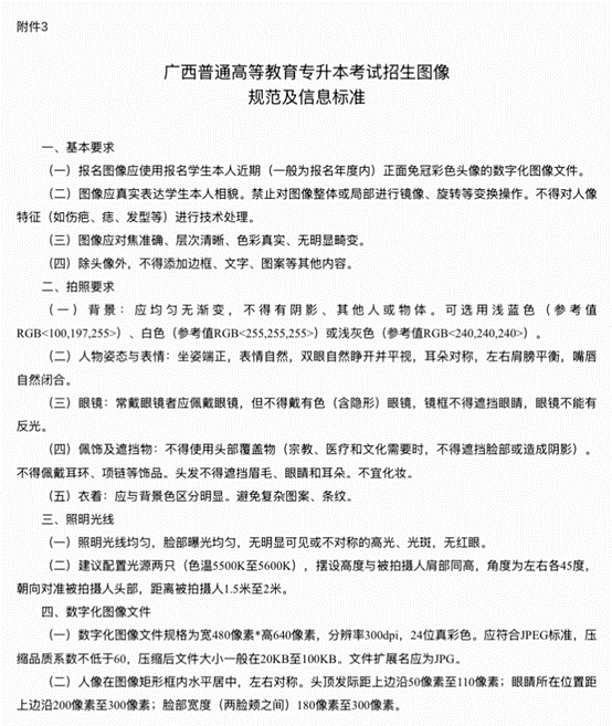 3.广西普通高等教育专升本考试招生图像规范及信息标准