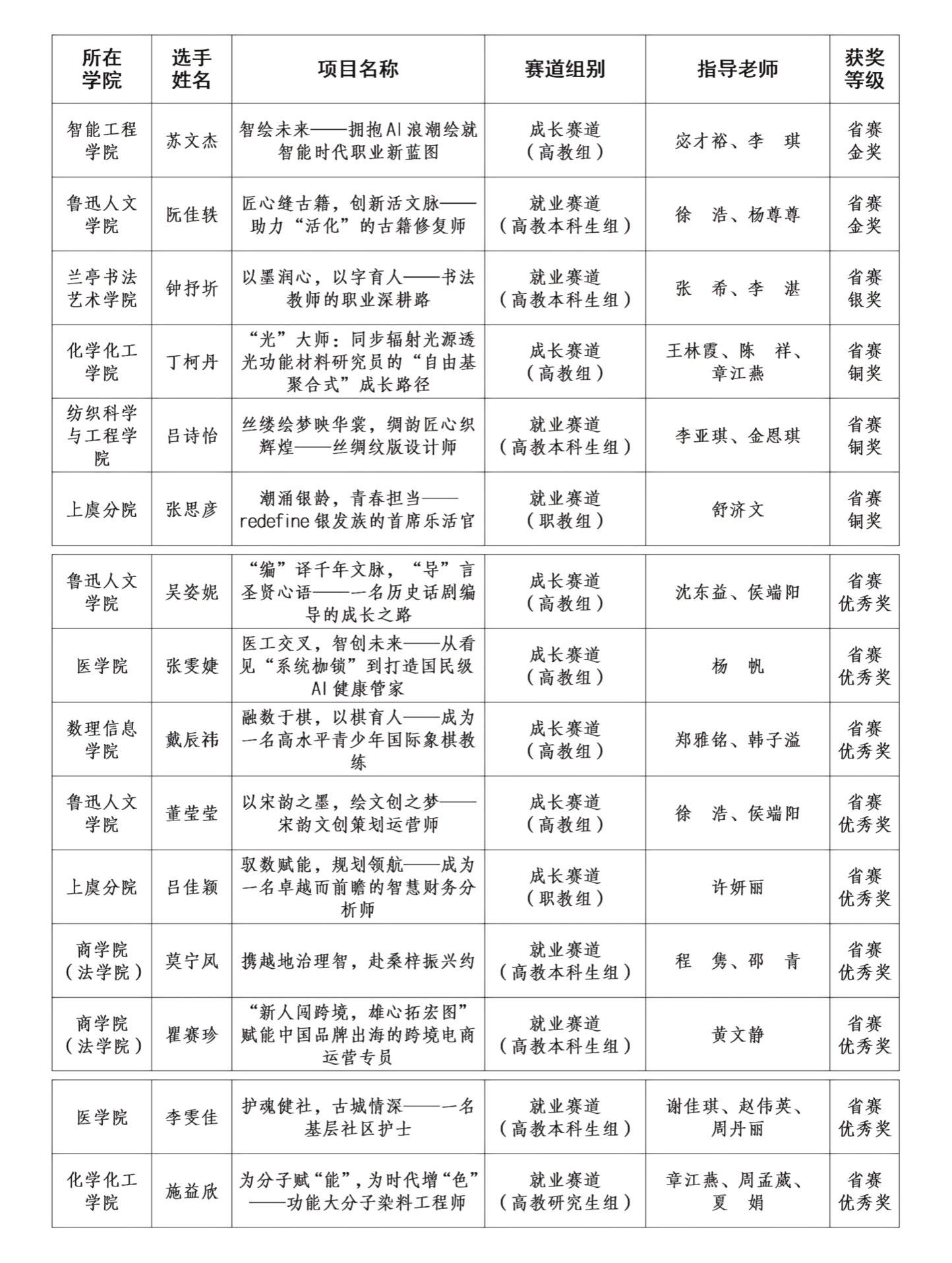 省赛获奖项目一览表