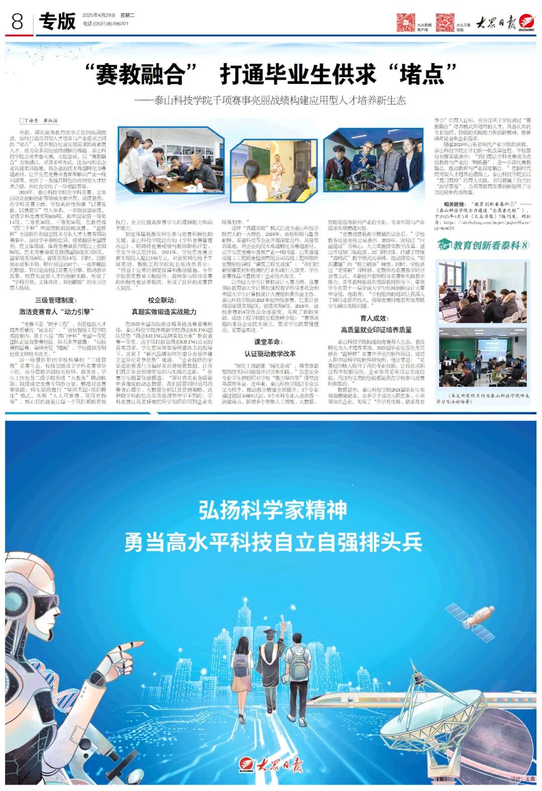 泰山科技学院高质量人才培养之路