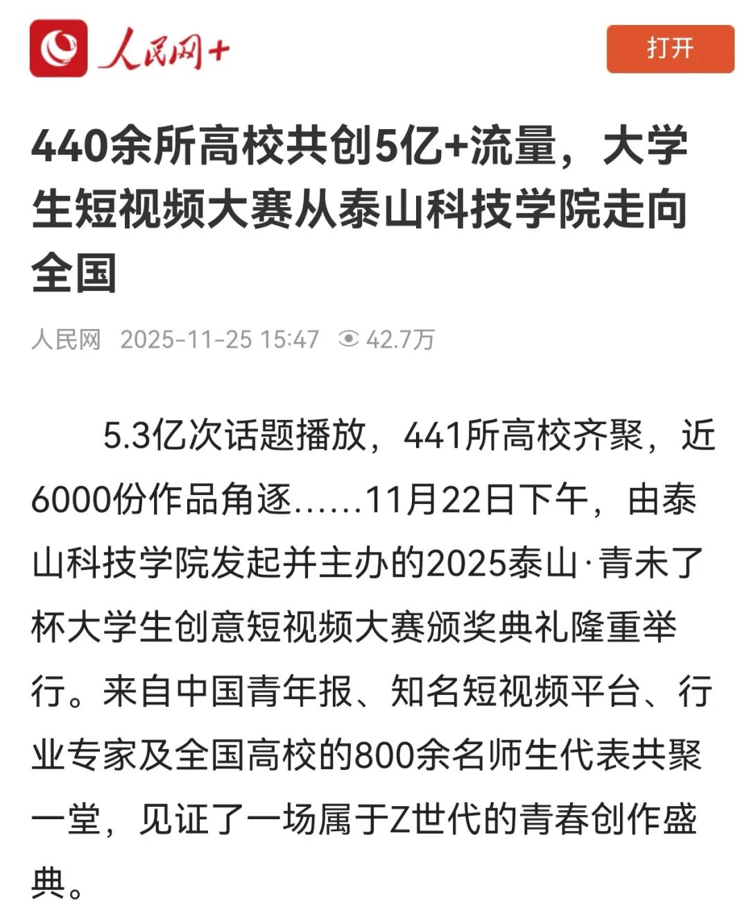从泰山科技学院走向全国