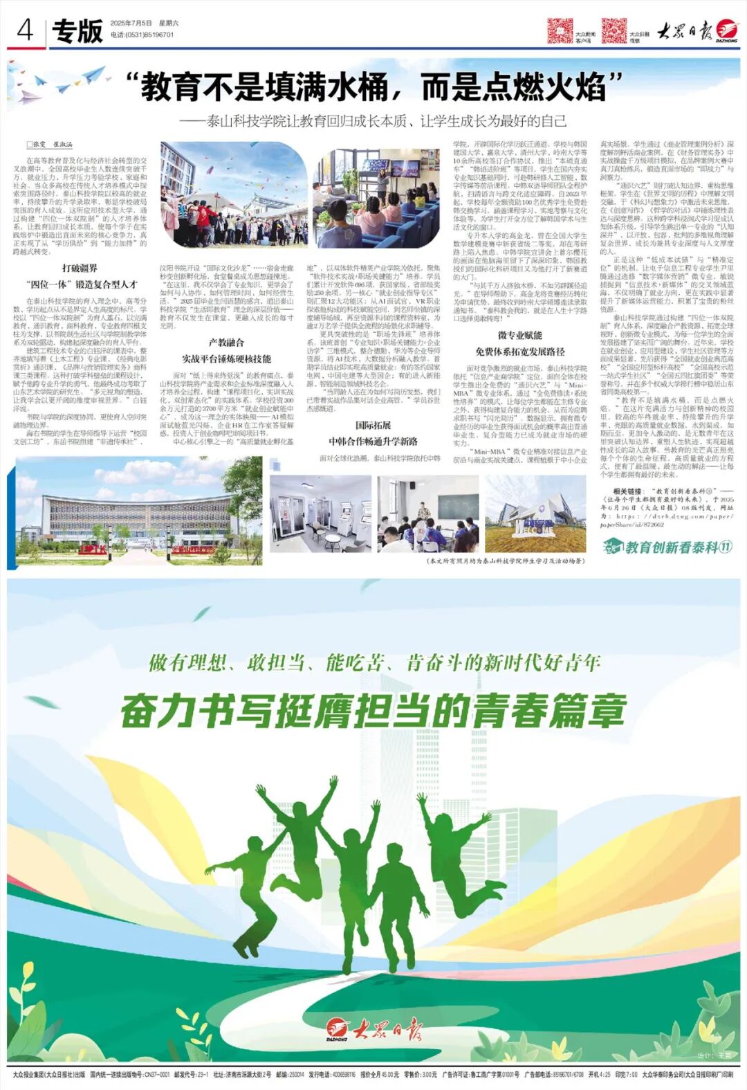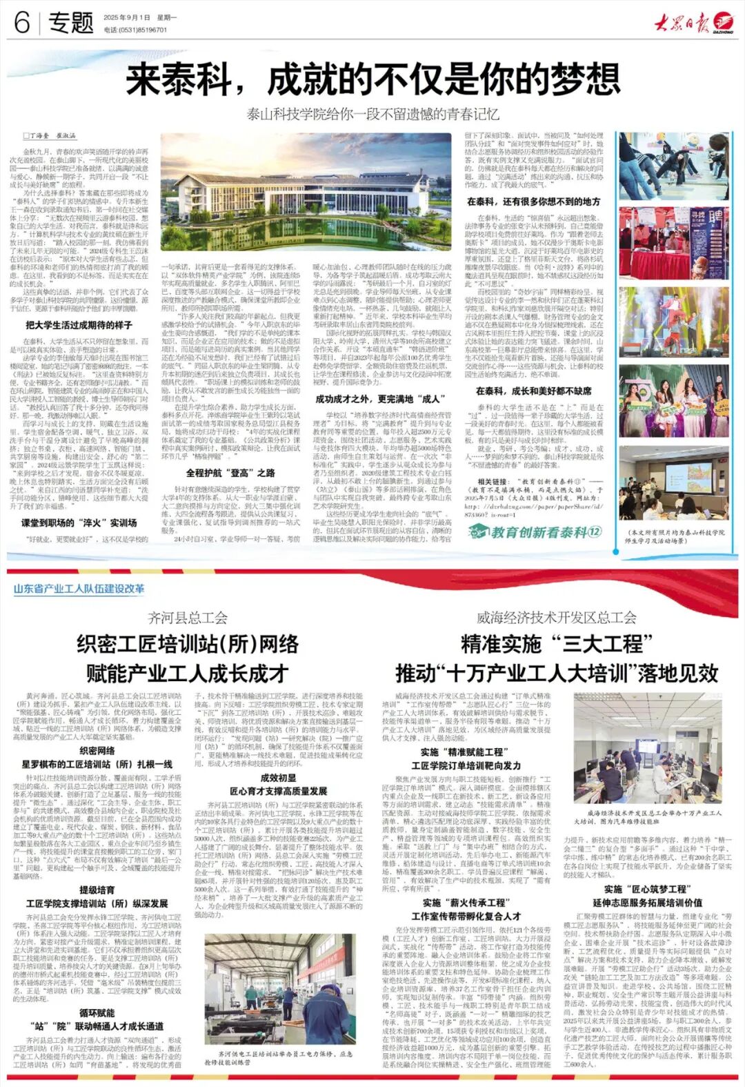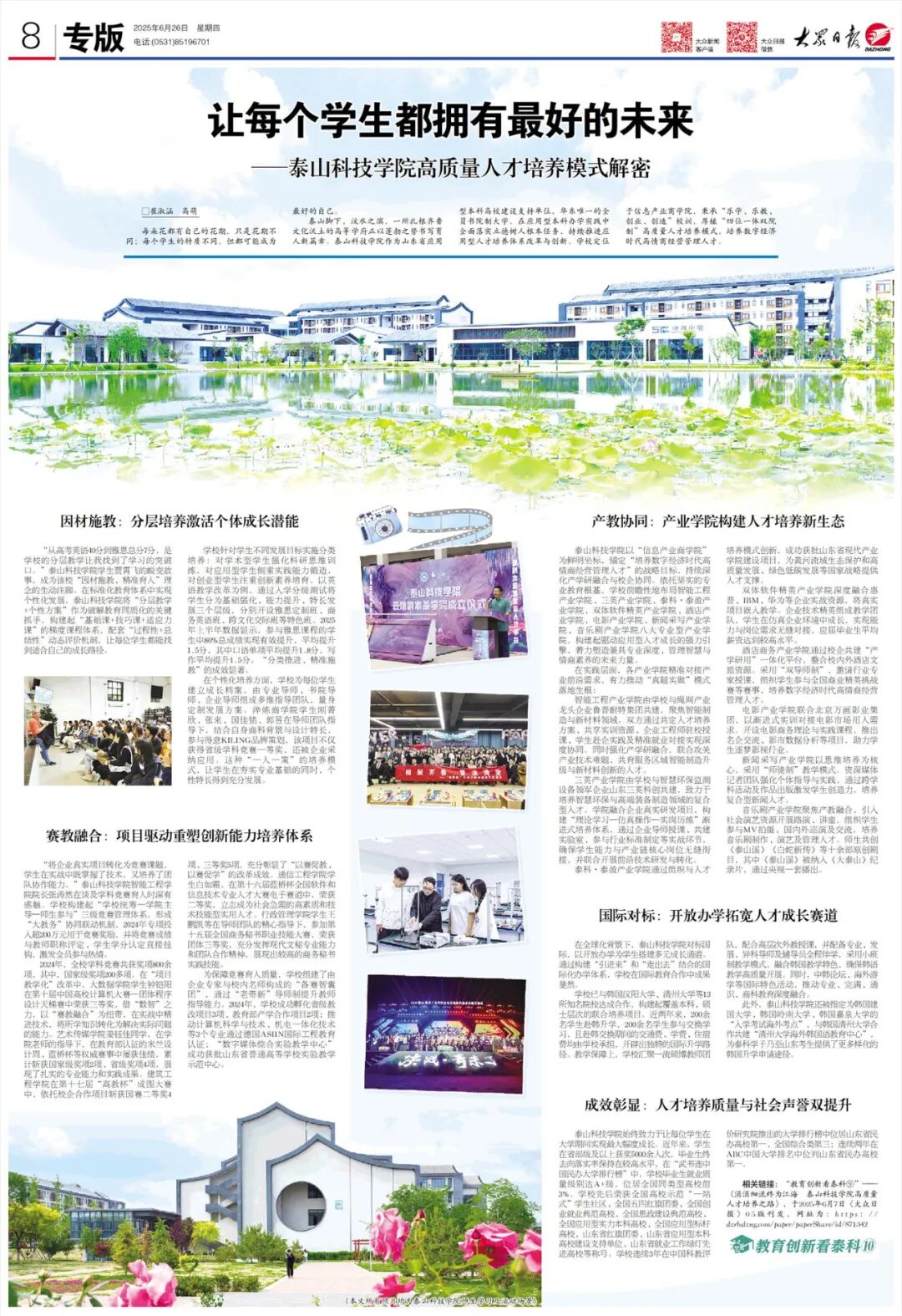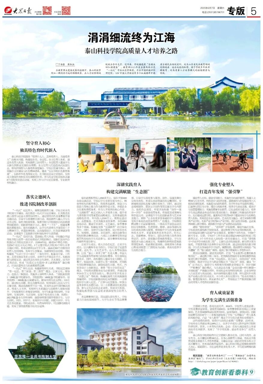 泰山科技学院让教育回归成长本质