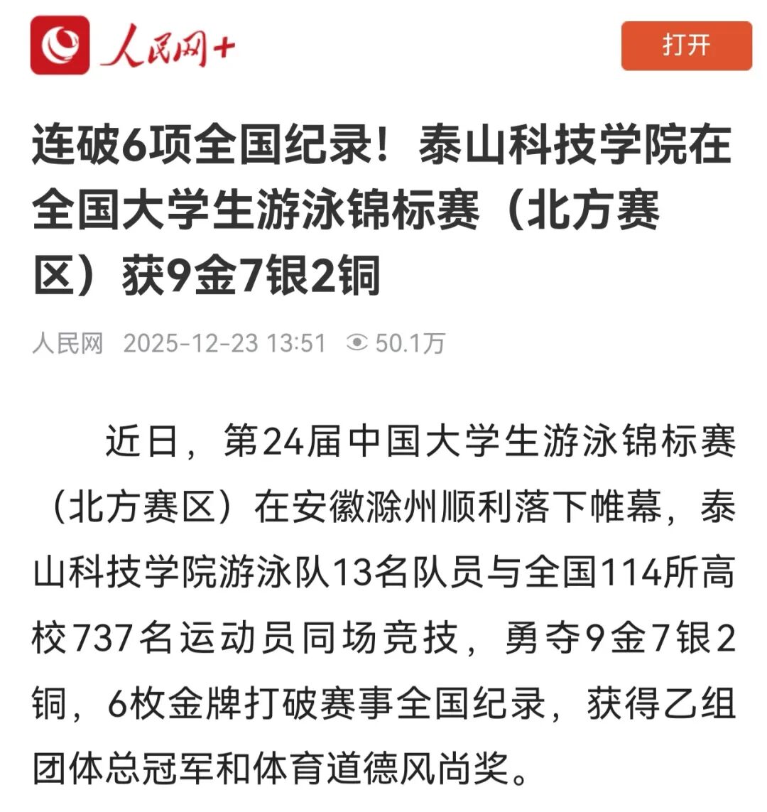 连破6项全国纪录!泰山科技学院在