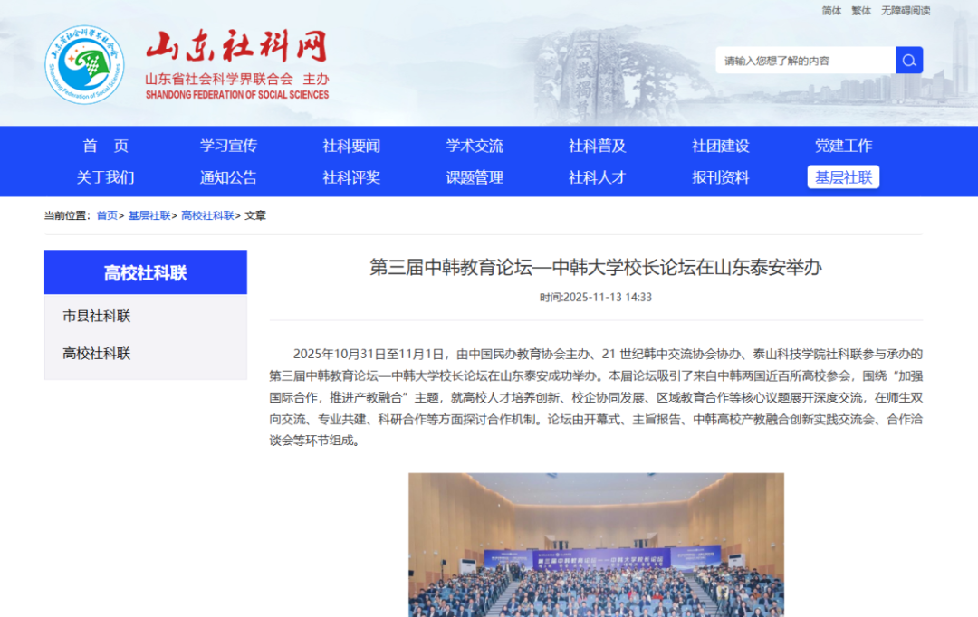第三届中韩教育论坛在泰安举行
