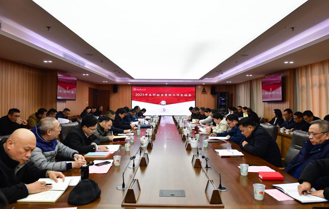 本网讯 1月6日,我校2025年本科招生录取工作总结会在三江校区濂溪楼召开。校党委书记刘祖文,校党委常委、副校长宁洁出席会议,党委宣传部、教务处、招生就业处部门负责人,各学院院长、党委(党总支)副书记及相关工作人员参加会议。会议由宁洁主持。