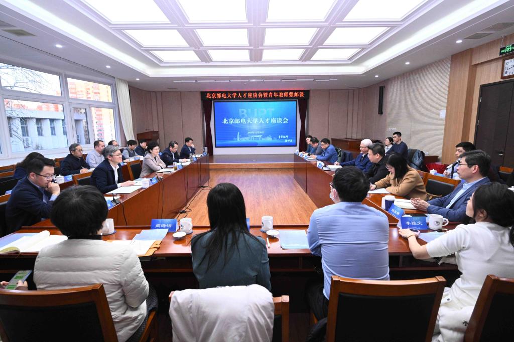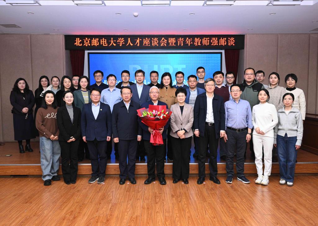 近日,北京邮电大学举办人才座谈会暨第四期青年教师强邮谈活动,校党委书记续梅、校长徐坤、副校长黄善国、彭木根、王源与邓中亮院士、青年教师代表齐聚一堂,共话育人初心,共谋发展良策,相关职能部门负责人参加会议,副校长彭木根主持会议。
