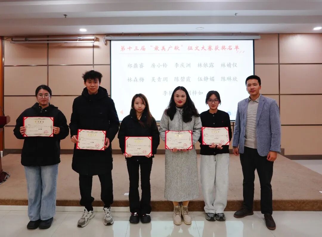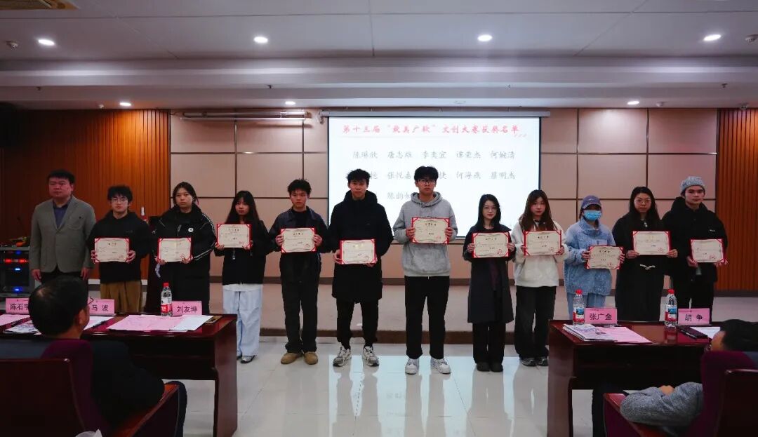 学校团委朱亮亮书记为第十三届"最美广软"征文大赛获奖代表颁奖