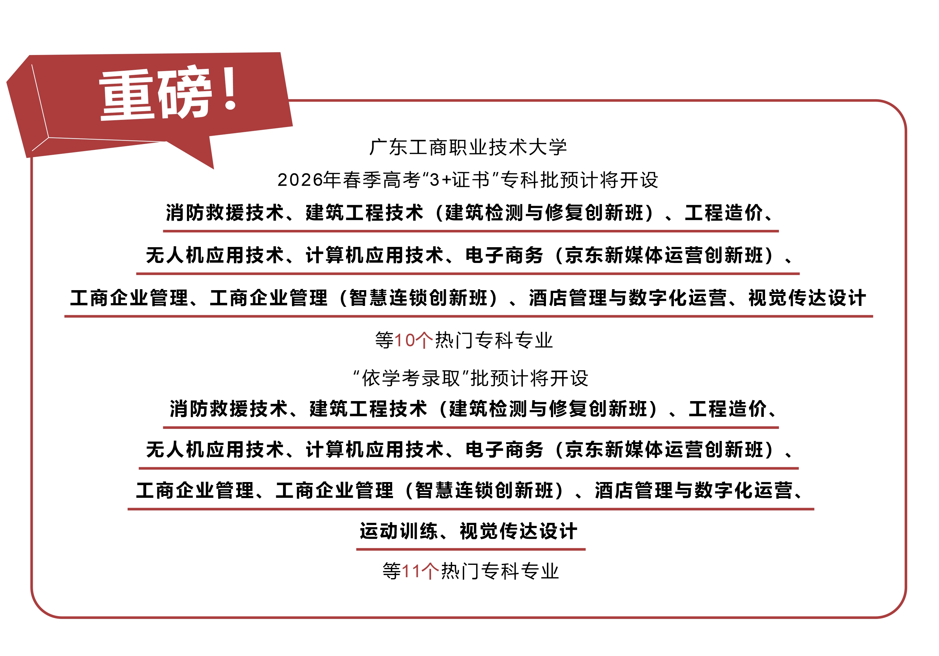 备注:2026年春季高考招生专业及计划等最终以《广东省2026年普通高校春季高考统一招生专业目录》为准。