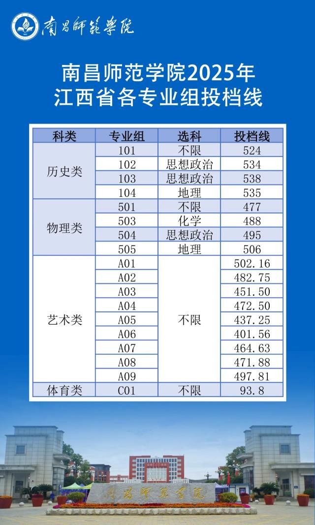 南昌师范学院2025年江西省各专业组投档线