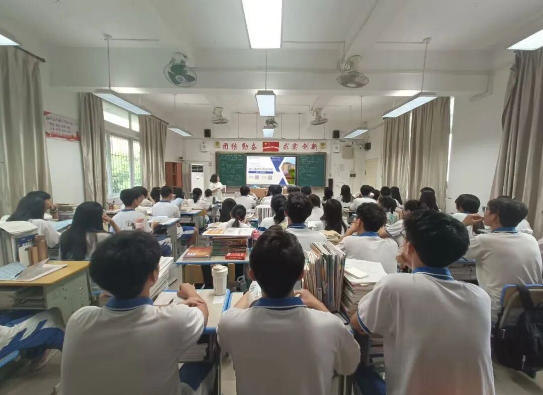 随着晚自习铃声的响起,老师带领我到他的班级,同学们都十分投入着看着我播放的越秀宣传短片与ppt。同时我也向大家分享丰富多彩的校园生活。并且,我也向他们介绍了学校的优势与我就读的日语专业。看着同学们传阅着我发的越秀宣传册,不禁想起我当年也与他们一样,充满着对未来大学生活的渴望。