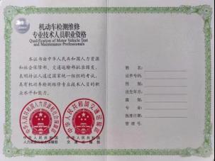 汽车维修工职业技能证书