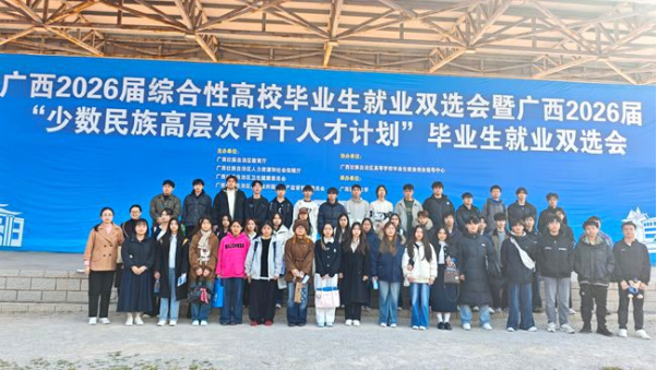 为深入贯彻党中央、国务院关于高校毕业生就业工作决策部署,落实2026届全国高校毕业生就业创业工作会议精神,积极响应教育部2026届高校毕业生“寒假促就业暖心行动”号召,充分利用寒假窗口期为毕业生搭建优质就业对接平台,助力毕业生精准求职、高质量就业,1月10日,学校组织部分2025届、2026届毕业生,2027届学生及就业指导教师赴广西民族大学,参加广西2026届综合性高校毕业生就业双选会暨“少数民族高层次骨干人才计划”毕业生就业双选会,以实际行动推进“寒假促就业暖心行动”落地见效。