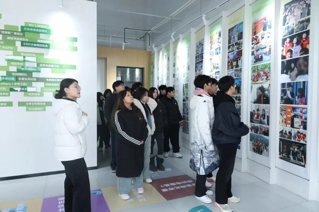 在万画影城,招生处胡茂盛老师全面介绍了学校的发展历程、学科体系构建、校园文化及特色教育。师生们集中观看第二课堂纪实短片《泰山小满掠影》,感受学校特色鲜明的教育模式和青春热闹的校园氛围。在敢当书院内,赵晓宇老师带领师生参观了书院活动室与工坊,感受了独属于“敢当”的文化;在双体软件精英产业学院,蔡艳清老师引导大家参观教学设施与实训基地,对学院“软件技术实战+职场关键能力”的双体系人才培养模式有了详细了解。