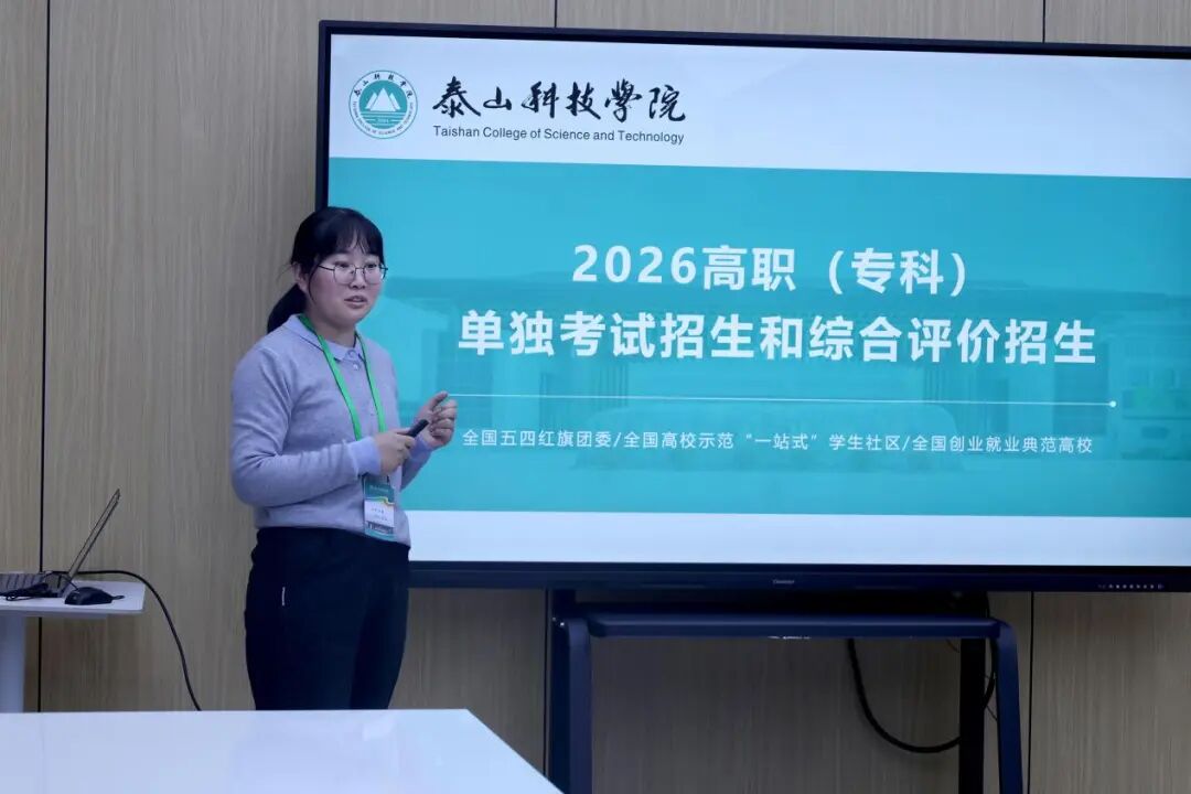 招生处刘瑞才老师为学生们讲解单招综评政策,通过互动问答环节精准回应学生疑问。高三年级主任兼综评班主任韩金澎老师和学生们纷纷表示,此次参观让他们对泰山科技学院的办学环境与优质资源有了全面认知,满意度极高。
