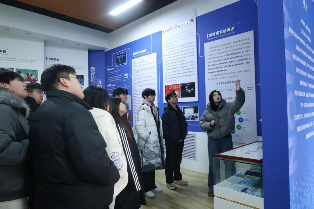 最后,师生们来到了育英书院。曹月阳老师详细介绍了书院在学术交流、文化传承、学生综合素质培养等方面所开展的特色活动与取得的丰硕成果,并在114教室开展座谈交流。值得一提的是,机械制造及自动化25-1班学生张凯然作为潘庄高级中学毕业生代表,分享了自己在大学的学习节奏、生活日常与平台资源,以亲身经历缓解了学弟学妹们对升学过渡的担忧与困惑。