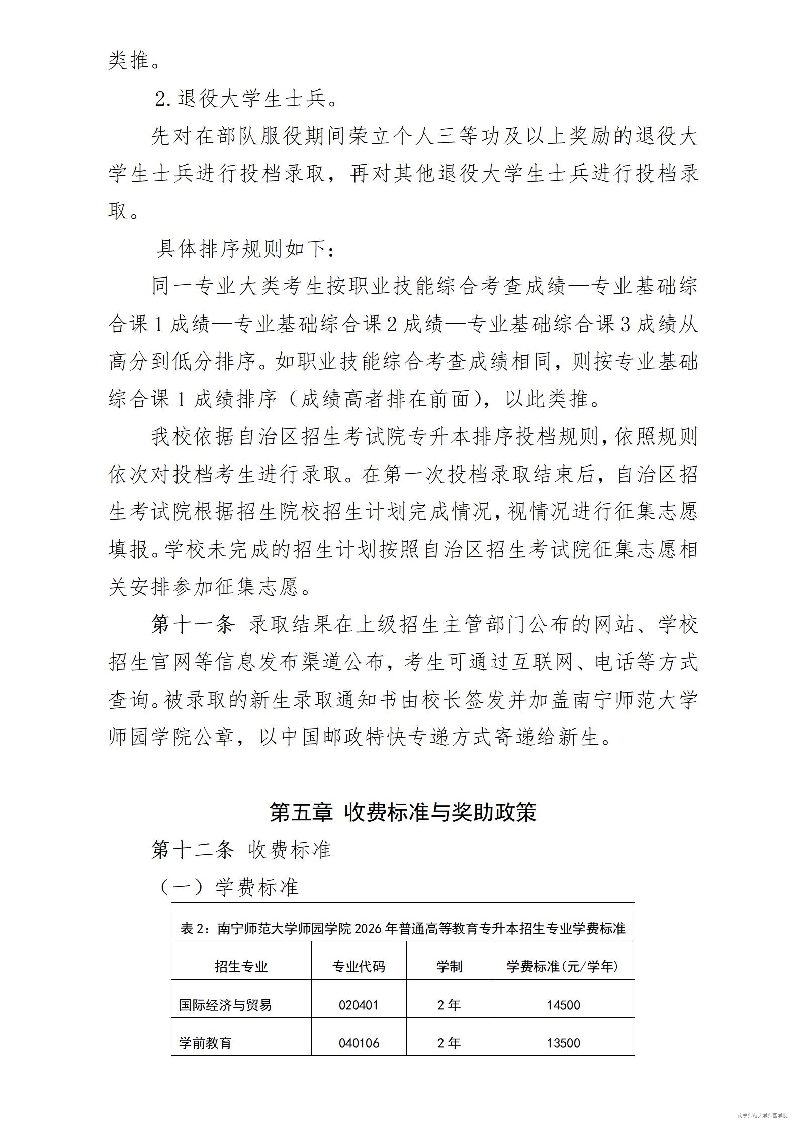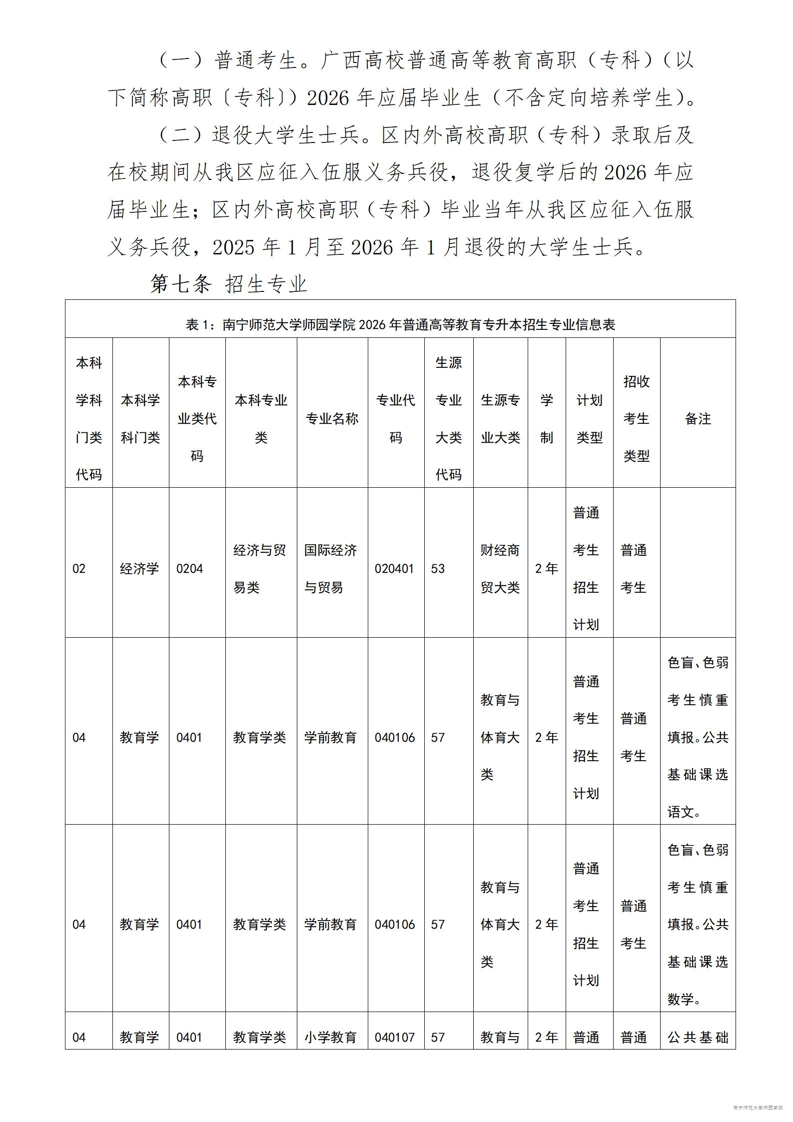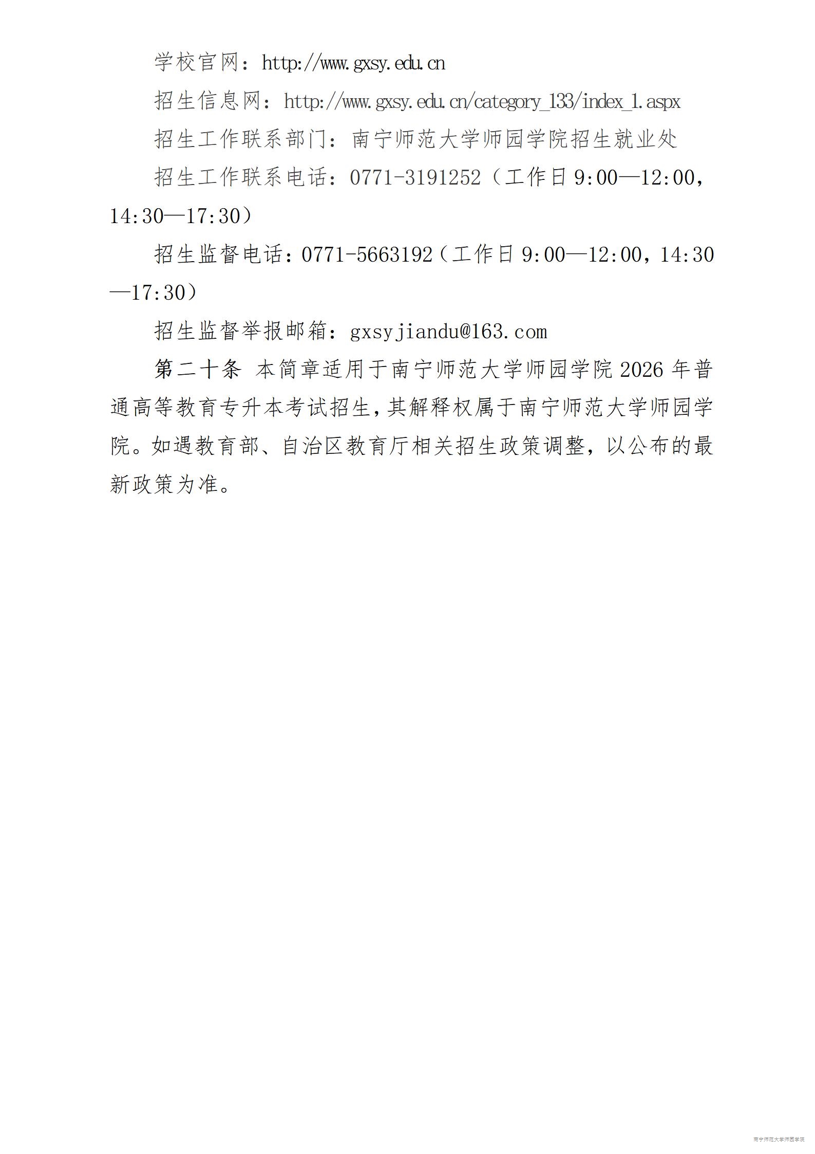 南宁师范大学师园学院2026年普通高等教育专升本招生简章