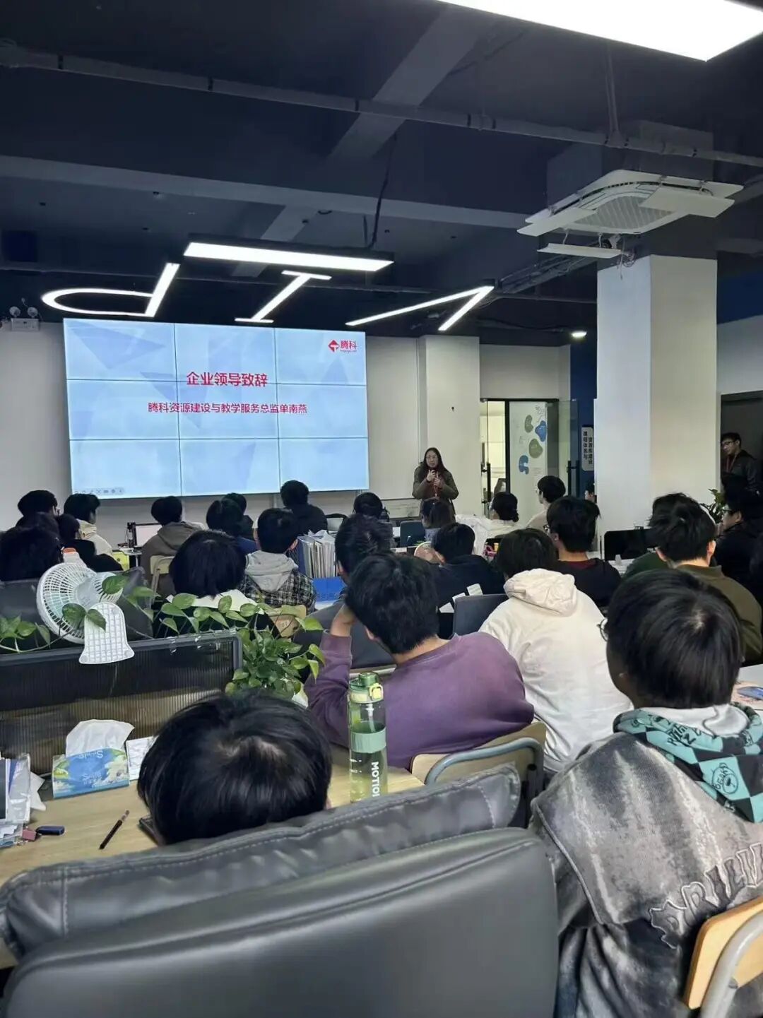 笃行技术实践助力学子启航腾科-网安鸿蒙应用开发实训营为了让我院学子紧跟国产操作系统发展浪潮,提前了解鸿蒙应用开发核心技术,1月9日—13日,我院与腾科网络技术有限公司携手合作,成功举办了为期5天的“鸿蒙应用开发实训营”。1月9日,实训营开班仪式顺利举行,网安学院院长周化、党委书记张卫香、副院长李毓丽,腾科项目经理袁泽帆、教学总监单南燕,实训营班主任罗嘉林,以及网络工程、云计算、信息管理等相关专业的近百名优秀学子共同参与。