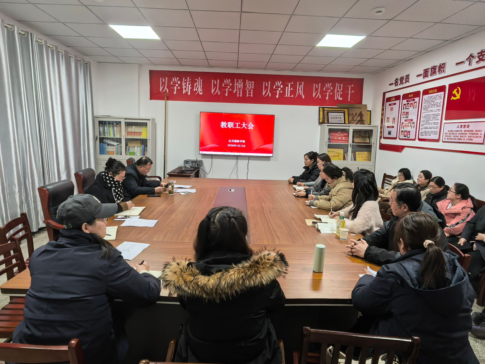 1月13日下午,公共课教学部召开寒假前全体教职工大会,统筹安排寒假各项工作,强化思想政治引领与纪律作风建设,确保全体教职工度过一个安全、文明、廉洁的假期。