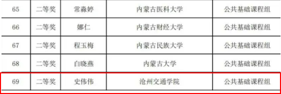 近日,京津冀蒙四地教育行政部门首次携手,共同举办首届京津冀蒙本科高校课程思政教学比赛暨第五届内蒙古自治区本科高校课程思政教学比赛。我校通识教育学院史伟伟老师在比赛中荣获二等奖,展现了我校在课程思政建设方面的积极成果与教师的优良教学水平。