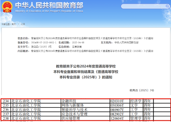 申报的五个本科专业全部获批,新增专业数量创近年新高,标志着我校学科专业布局,向“新工科 + 新文科 ”融合发展迈出关键一步,为服务首都高精尖产业发展和城市治理现代化注入了创新人才动能。