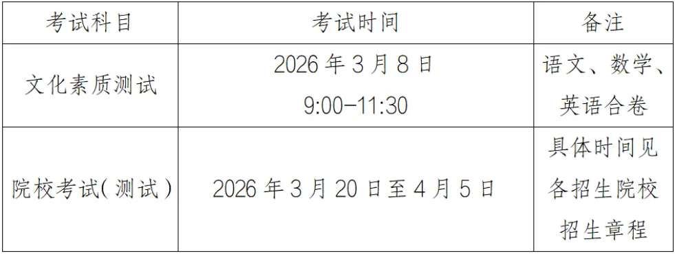 报考对口招生的考生须参加全省统一组织的文化素质测试,成绩达线考生方可参加招生院校组织的院校考试(测试)。符合免文化素质测试条件的考生按相应政策执行。