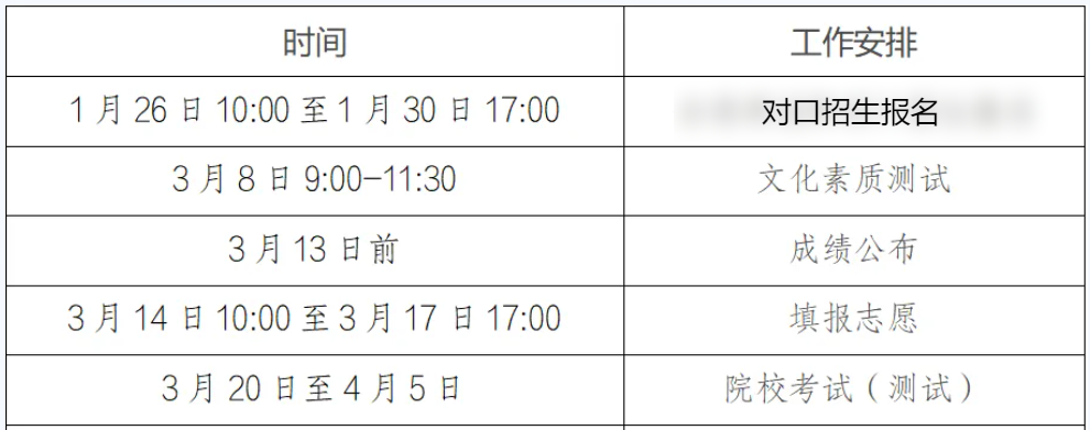对口招生“报名”和“志愿填报”分阶段进行,即符合报名条件的考生网上报名后,参加全省统一组织的文化素质测试,成绩公布后再填报院校与专业志愿。所有报名参加对口招生的考生均编排文化素质测试考场,符合免文化素质测试条件的退役军人等考生,可自行决定是否参加文化素质测试。