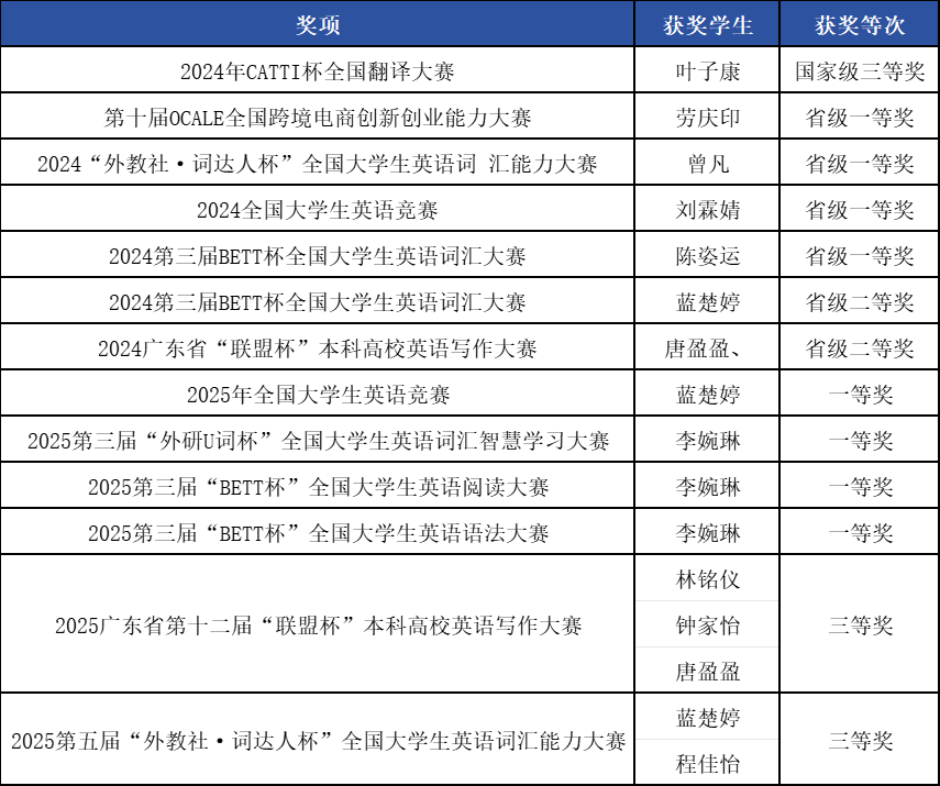 获得国家奖学金、3次学生奖学金一等奖、1次学生奖学金二等奖、学校优秀共青团员、优秀学生骨干等荣誉,全国大学生英语竞赛B类二等奖。