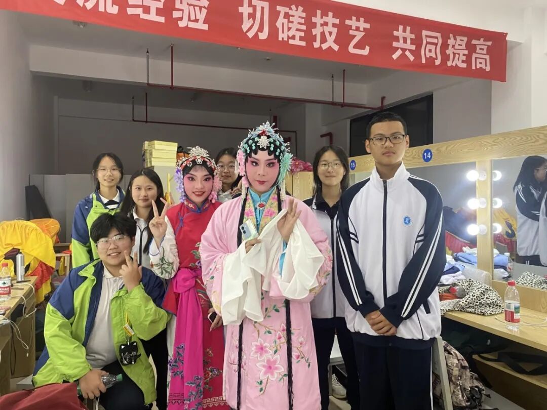 后台的化妆间里,挤满了像小徐这样“取经”的同学,从“街舞怎么练爆发力”“朗诵如何把握情感”到“合唱怎么找准声部”你一言我一语的热烈交流中,传统戏曲的魅力跨越校园,艺术的种子在真诚互动里悄然萌芽。