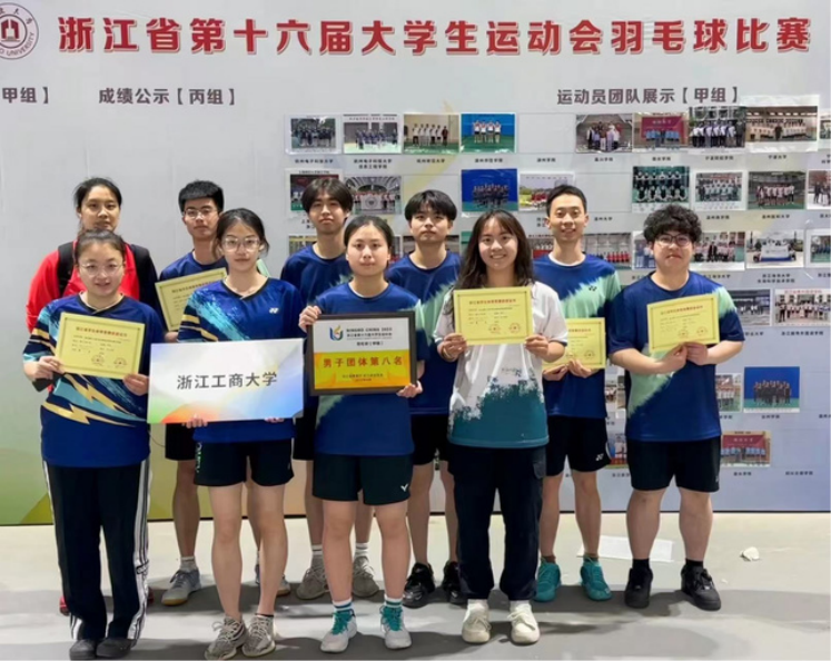 踏入浙商大,他第一时间加入校羽毛球队,2023年以队长身份带队征战省第十六届大运会。赛场磨炼的坚持与拼搏,也成了他学业科研的“底气”。
