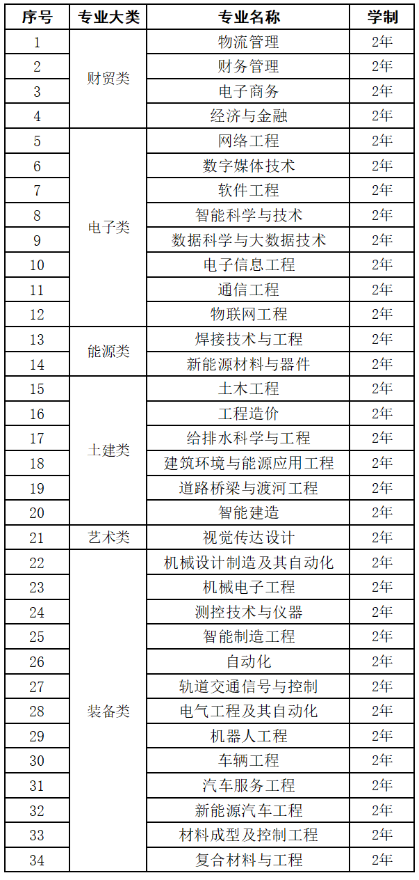 表1 兰州工业学院2026年高职(专科)升本科招生专业
