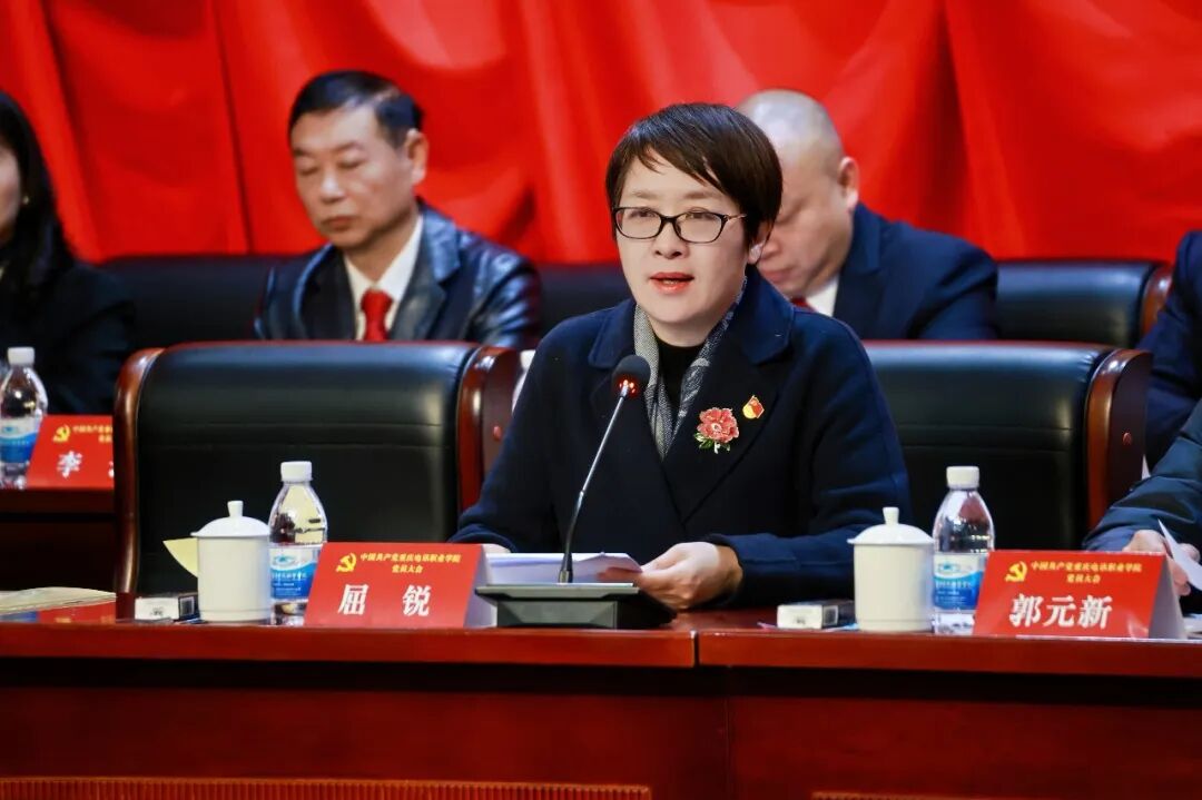 屈锐代表市委教育工委、市教委向大会的召开表示热烈祝贺。她充分肯定了学校在推动人才培养、专业建设、队伍建设、科学研究、社会服务和校园建设等方面取得的卓越成绩,学校办学水平显著提高、各项事业发展势头良好。她希望学校一要强化政治引领,把牢办学方向,完善体制机制,夯实党建保障;二要聚焦立德树人,深挖红色资源,擦亮“电讯红”育人品牌;三要深化改革创新,优化治理结构,提升服务能力。她表示,市委教育工委、市教委将继续支持学校改革发展,希望全校师生以习近平新时代中国特色社会主义思想为指导,坚定信心、开拓进取,奋力谱写高质量发展新篇章;希望新一届党委团结带领全体师生,为教育强市建设和中国式现代化重庆实践贡献更大力量。