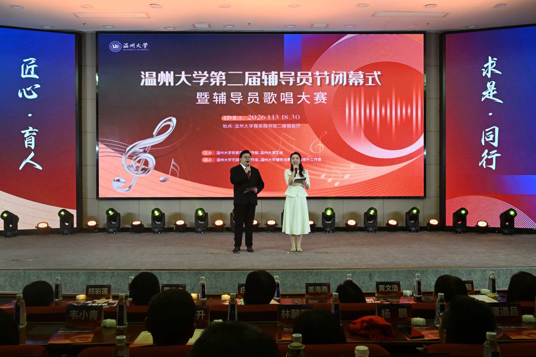 随后的辅导员歌唱大赛中,来自19个学院的辅导员代表相继登台献艺。比赛现场歌声飞扬、精彩纷呈,合唱、情景演唱、歌伴舞等多元形式充分展现了辅导员队伍的多才多艺与青春风采,生动诠释了育人路上的真挚情怀与执着坚守。本次大赛由招商银行温州分行提供赞助支持。经专业评委现场评审,体育与健康学院凭借出色表现斩获金奖,法学院与继续教育学院荣获银奖,生命与环境科学学院获得铜奖。