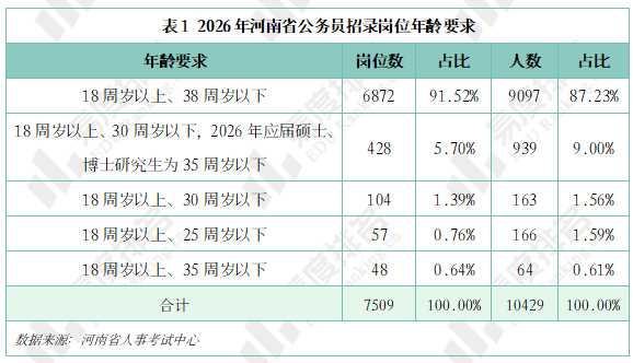 一、共有7509岗位招录10429人,年龄放宽至38岁