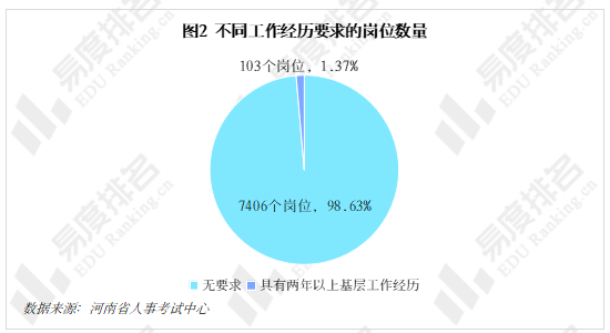 河南省2026年公务员招录岗位有近99%的岗位对工作经历无要求,其余约1%的岗位要求具有两年以上基层工作经历(均为省直机关)。