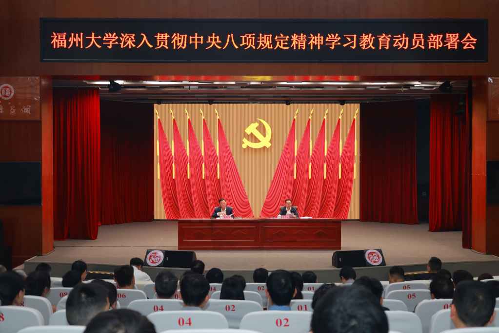 2025年3月26日,福州大学召开深入贯彻中央八项规定精神学习教育动员部署会,要求学校各级党组织、全体党员干部要认真学习领会习近平总书记关于加强党的作风建设的重要论述,锲而不舍贯彻中央八项规定精神,推动作风建设常态化长效化,以作风建设新成效为学校“双一流”建设提供有力保障。