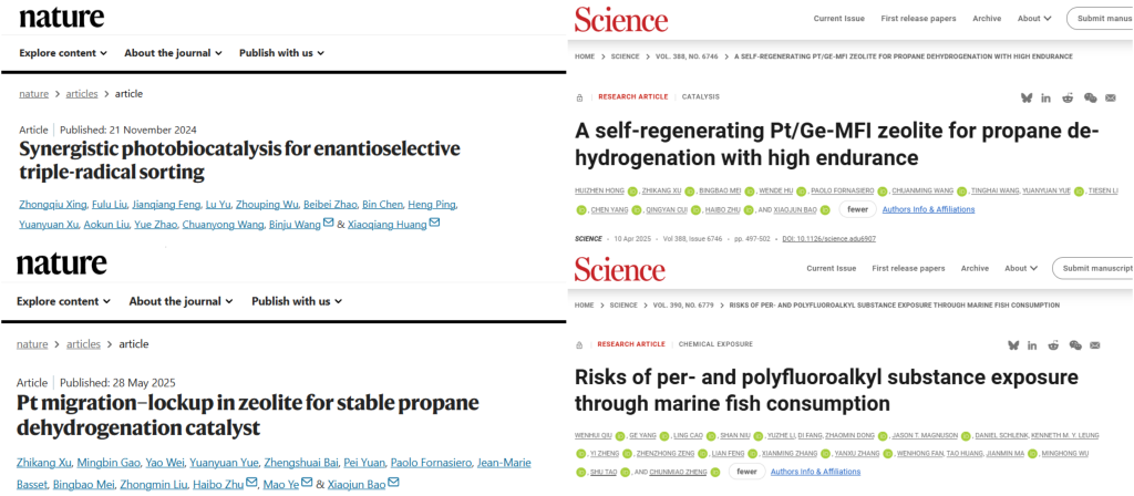 2025年,化工学院、氟氮化工新材料全国重点实验室鲍晓军教授、朱海波教授团队先后在《科学》《自然》发表重要成果。磷矿及其共伴生资源绿色高效开发利用全国重点实验室主任吴明红院士团队重要成果刊发于《科学》,化学学院“分子工程+”研究院冯键强副教授的合作研究成果登上《自然》。学校全年以第一或通讯单位发表CNS主刊论文4篇,并列中国内地高校第37位。