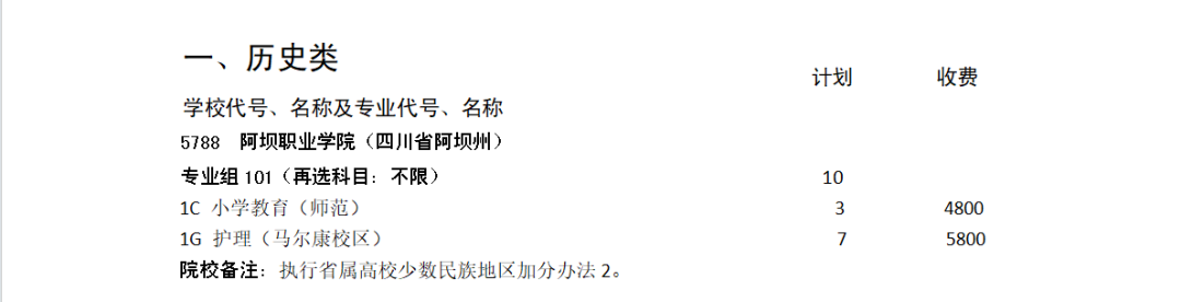 阿坝职业学院2025年专科补录计划