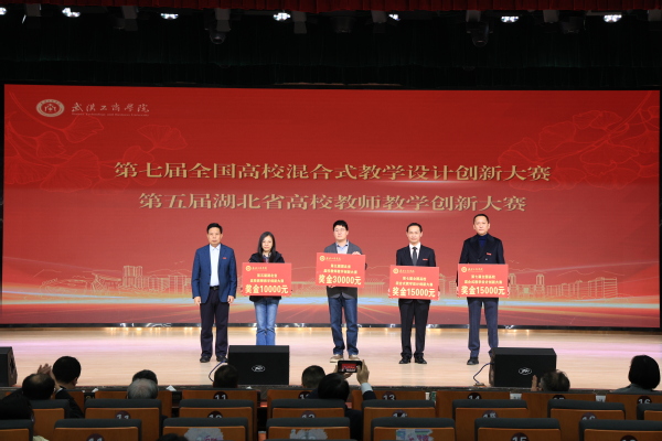 图为赵北平为第七届全国高校混合式教学设计创新大赛、第五届湖北省高校教师教学创新大赛获奖教师颁奖 摄影:芮雨欣
