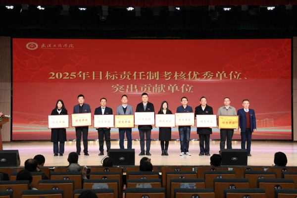新闻中心讯(记者 李洋洋)1月15日下午,武汉工商学院在玉振楼0501报告厅隆重举行2025年度总结表彰大会,全面回顾总结过去一年学校事业发展取得的丰硕成果,表彰为学校发展作出突出贡献的先进集体和个人,擘画2026年发展蓝图,动员全体师生员工凝心聚力、攻坚克难,奋力开启“十五五”高质量发展新篇章。校党委书记詹河焰、校长张俊等全体校领导,科级及以上管理干部,教授、副教授、博士,系(副)主任及受表彰代表参加会议。大会由詹河焰主持。