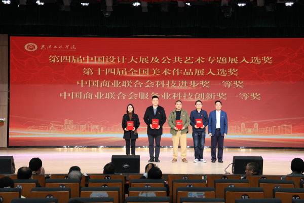 图为赵北平为第四届中国设计大展及公共艺术专题展入选奖、第十四届全国美术作品展入选奖、中国商业联合会科技进步奖一等奖、中国商业联合会服务业科技创新奖一等奖获奖教师颁奖 摄影:芮雨欣