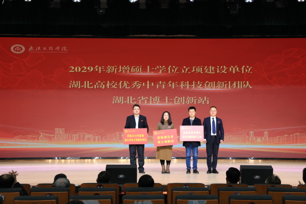 图为张俊为2029年新增硕士学位立项建设单位、湖北高校优秀中青年科技创新团队、湖北省博士创新站负责人颁奖 摄影:芮雨欣