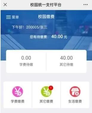 第二步:点击“综合服务”,综合服务中选择校园统一支付平台。