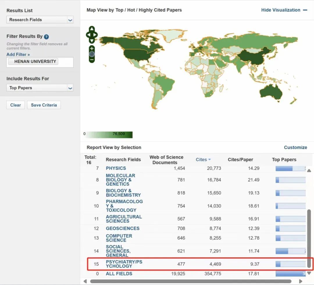 精神病学进入ESI前1%,全校有15个学科进入了ESI前1%,其中医学学科贡献5个。